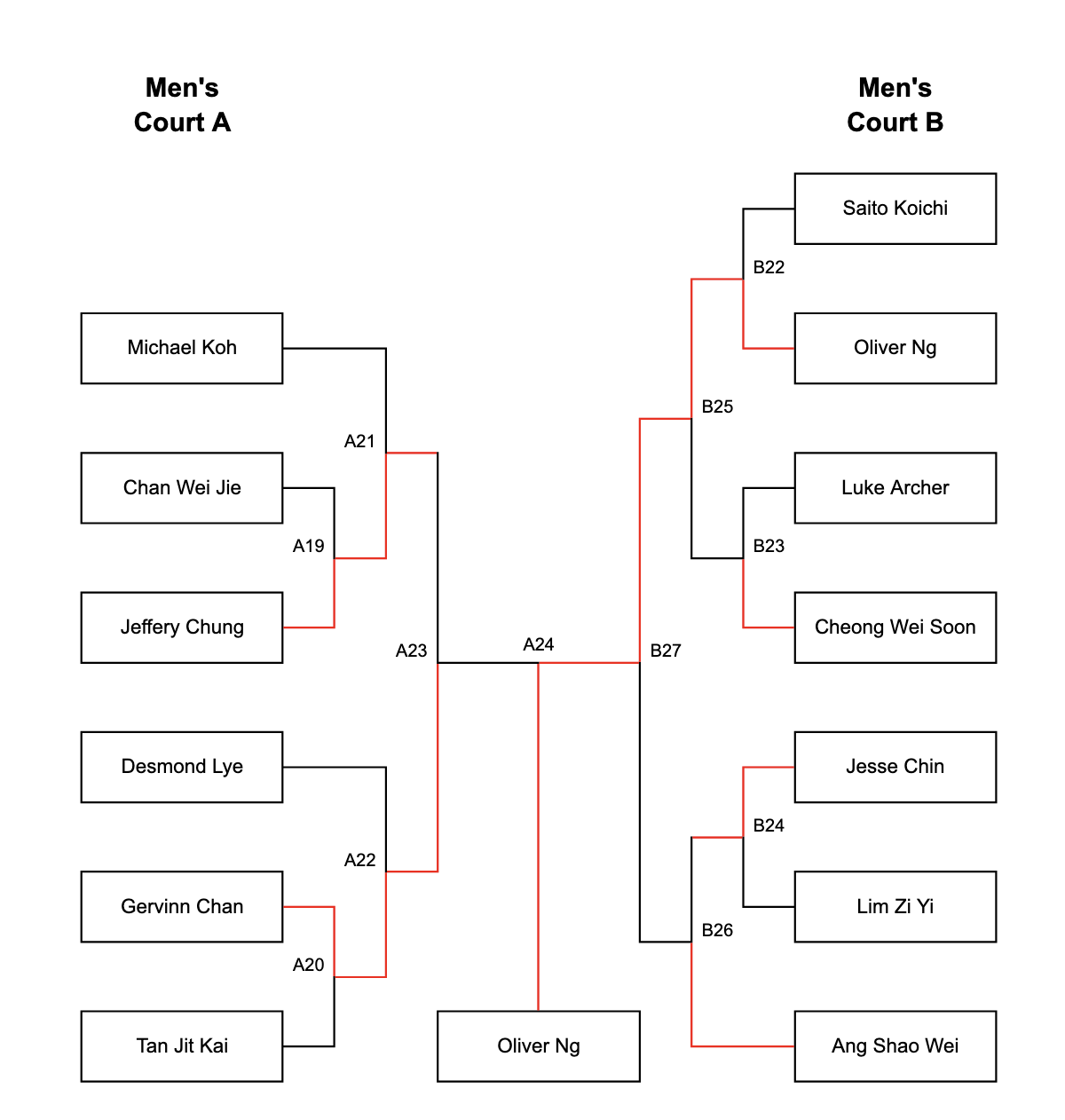 The criteria to determine the winning player of the round robins are based on the following hierarchy: overall matches won followed by total matches won followed by total points won.
